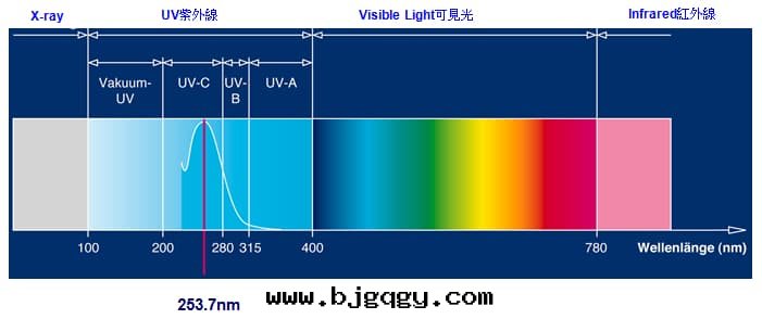 紫外(wài)線(xiàn)的(de)有(yǒu)效殺菌波(bō)段(duàn),是(shì)集中在(zài)UV-C波(bō)段(duàn)253.7nm處(chù),該波(bō)段(duàn)即为(wèi)DNA吸收(shōu)的(de)有(yǒu)效波(bō)长(cháng)集中所在(zài)。它(tā)能(néng)使细(xì)胞内的(de)DNA産生破壞性(xìng)反(fǎn)應(yìng),因(yīn)此(cǐ)一般統稱254nm为(wèi)殺菌專用(yòng)的(de)UV燈(dēng)。