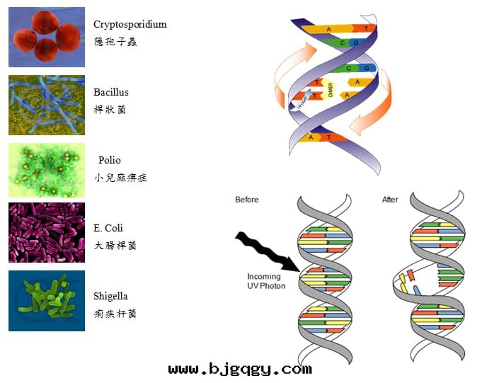 紫外(wài)線(xiàn)通(tòng)过(guò)改变遺传基因(yīn)DNA,使微生物(wù)無法(fǎ)再自(zì)行複制繁殖而(ér)死亡。