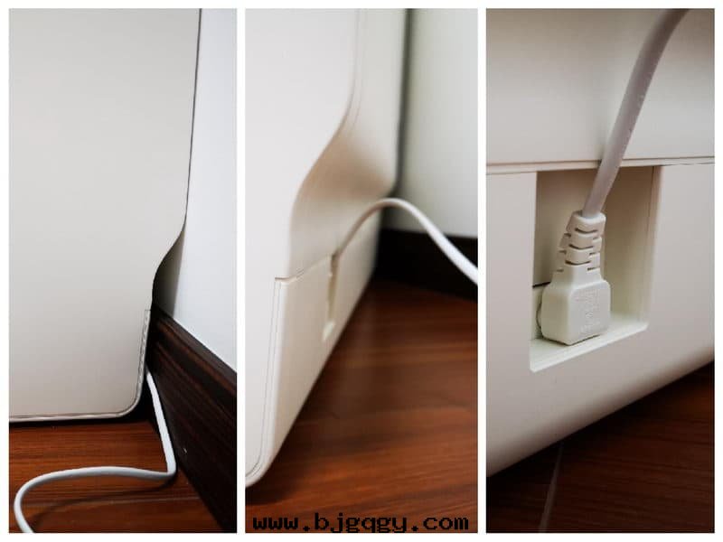 ▼機(jī)身(shēn)背部(bù)的(de)下(xià)方(fāng)自(zì)然連(lián)接的(de)就(jiù)是(shì)電(diàn)源線(xiàn),鞋(xié)柜設計(jì)的(de)也很周全(quán),考慮到(dào)家(jiā)中的(de)地(dì)腳(jiǎo)線(xiàn),为(wèi)了完全(quán)與(yǔ)牆(qiáng)面(miàn)貼合,不(bù)僅将電(diàn)源線(xiàn)插座進(jìn)行了内凹的(de)設計(jì),連(lián)上(shàng)電(diàn)源線(xiàn)後(hòu)也不(bù)会(huì)凸出(chū),而(ér)且(qiě)整體(tǐ)底部(bù)也進(jìn)行精巧的(de)設計(jì),完美(měi)的(de)避開(kāi)了地(dì)腳(jiǎo)線(xiàn),貼合家(jiā)庭内實(shí)際裝(zhuāng)修結構。