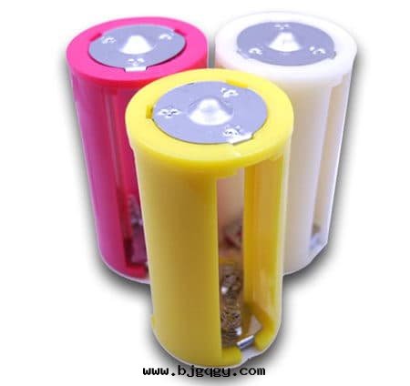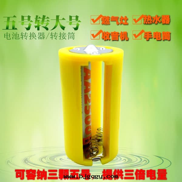 5号(hào)電(diàn)池轉(zhuǎn)1号(hào)電(diàn)池(五(wǔ)号(hào)轉(zhuǎn)大(dà)号(hào)) 轉(zhuǎn)換筒轉(zhuǎn)接器,最多(duō)可(kě)容納3颗(kē)(1~2颗(kē)也可(kě))5号(hào)電(diàn)池(並(bìng)聯電(diàn)量(liàng)提(tí)升(shēng)三(sān)倍,相當于(yú)延长(cháng)3倍使用(yòng)时(shí)长(cháng)),精準模具1:1設計(jì),做工精良,材料堅固,是(shì)替代(dài)1号(hào)電(diàn)池最好(hǎo)的(de)選擇,顔色(sè)有(yǒu)黃、白(bái)两(liǎng)色(sè)(紅(hóng)色(sè)缺貨)顔色(sè)随機(jī)發(fà)貨。PS:2016年(nián)新(xīn)貨均为(wèi)改良型,彈簧比过(guò)去(qù)短,更便于(yú)電(diàn)池安(ān)裝(zhuāng)。