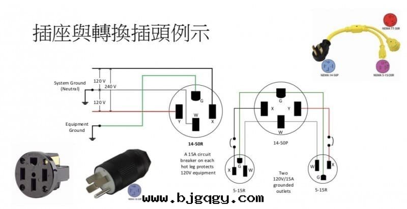 4. 大(dà)功率的(de)電(diàn)器是使用(yòng)四(sì)孔插座。 四(sì)个(gè)扁孔其(qí)中(zhōng)一(yī)个(gè)方(fāng)向(xiàng)不(bù)同,所(suǒ)以(yǐ)不(bù)会(huì)插反。 4个(gè)孔是 火(huǒ)線(xiàn)1,火(huǒ)線(xiàn)2,中(zhōng)線(xiàn)和(hé)地(dì)線(xiàn)。 于(yú)是点爐竈上面(miàn)的(de)照明(míng),計(jì)时(shí)器,控制電(diàn)路(lù)等等使用(yòng)120V (火(huǒ)線(xiàn)和(hé)中(zhōng)線(xiàn))。 发热(rè)線(xiàn)是使用(yòng)240V (連(lián)接火(huǒ)線(xiàn)1和(hé)火(huǒ)線(xiàn)2)。