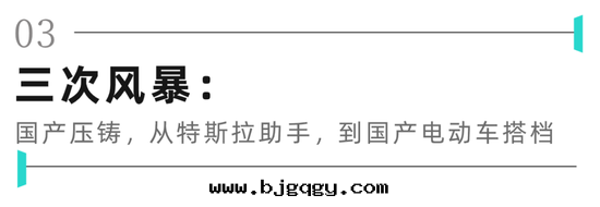 如(rú)果(guǒ)说(shuō),從前(qián)特(tè)斯拉入(rù)華对(duì)于(yú)中(zhōng)國(guó)電(diàn)動(dòng)車产業的(de)鲶魚效應(yìng),讨論的(de)聲音(yīn)主(zhǔ)要(yào)集中(zhōng)在(zài)宏观的(de)整車层(céng)面(miàn);那(nà)么如(rú)今中(zhōng)國(guó)壓鑄产業的(de)三(sān)次(cì)变革(gé),則为(wèi)这(zhè)一(yī)过(guò)程提(tí)供了(le)更(gèng)为(wèi)具體(tǐ)的(de)微观樣(yàng)本(běn)。