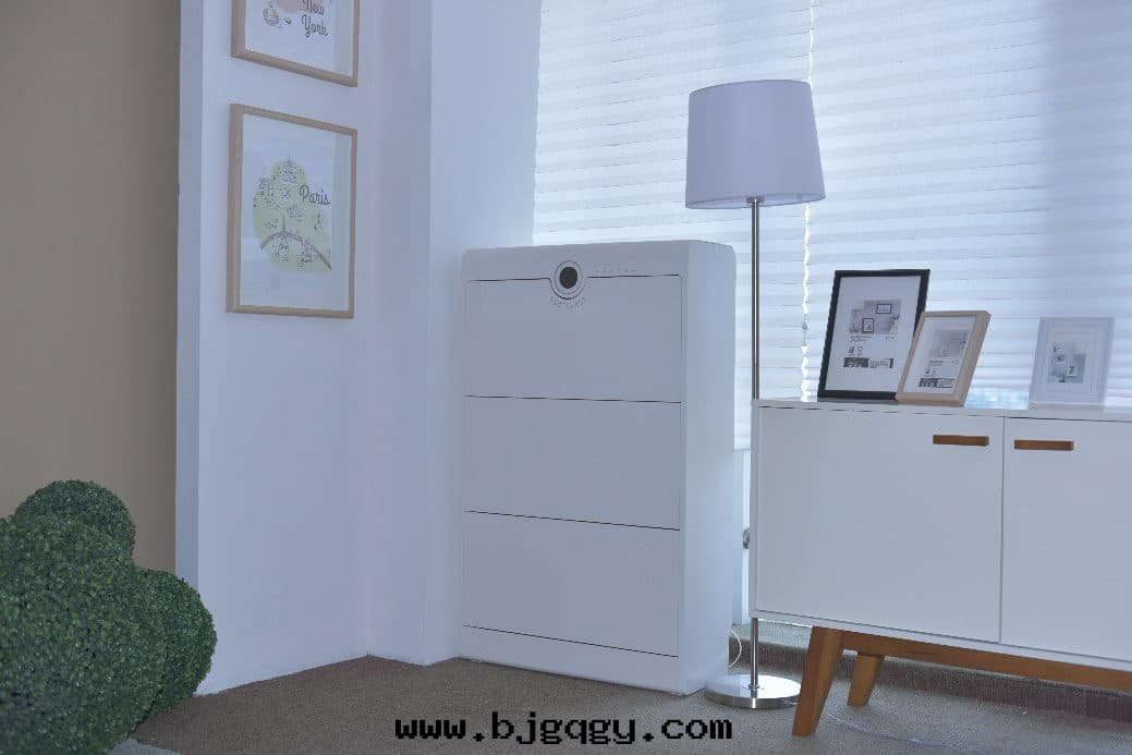 外(wài)观介紹 整體(tǐ)外(wài)观 Footies智能(néng)鞋(xié)櫃護理(lǐ)機(jī)是家(jiā)居(jū)白(bái)款,入(rù)目舒适,從整體(tǐ)上说(shuō),它(tā)沒(méi)有(yǒu)之(zhī)前(qián)那(nà)些傳統鞋(xié)櫃的(de)繁雜,在(zài)设計(jì)上已经颠覆了(le)鞋(xié)櫃外(wài)观的(de)整个(gè)印(yìn)象(xiàng),它(tā)的(de)重(zhòng)量(liàng)在(zài)21kg左(zuǒ)右,由(yóu)于(yú)Footies采用(yòng)的(de)是一(yī)體(tǐ)機(jī)非(fēi)组装的(de)设計(jì),機(jī)子的(de)線(xiàn)条感(gǎn)較为(wèi)柔和(hé),看(kàn)起(qǐ)来(lái)会(huì)顯的(de)輕(qīng)巧一(yī)些。